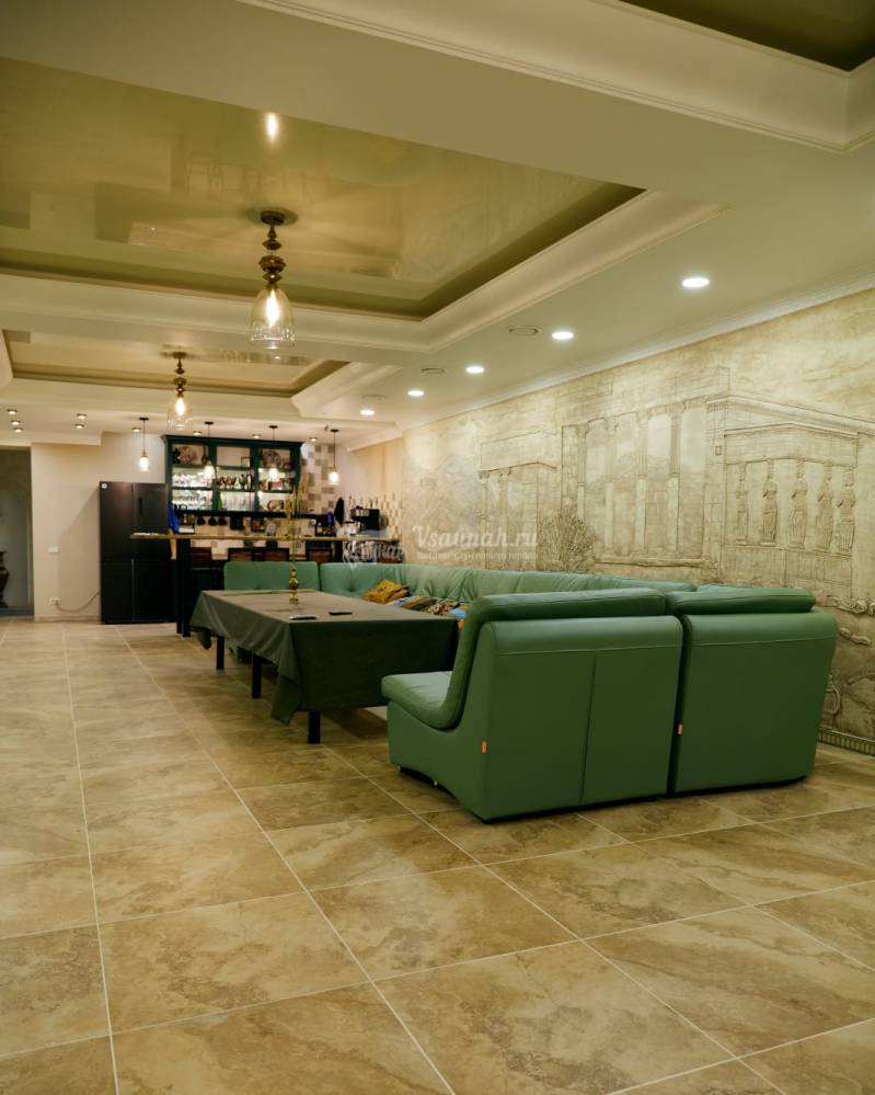 Наш комплекс услуг включает традиционную Русскую баню, расслабляющий хамам и просторный бассейн площадью 100 кв.м. Для вашего удобства предусмотрены две комфортабельные спальные комнаты, большой зал с кухней, а также бильярд и караоке для веселых вечеров. На свежем воздухе вас ждет большая беседка с зоной для барбекю.
