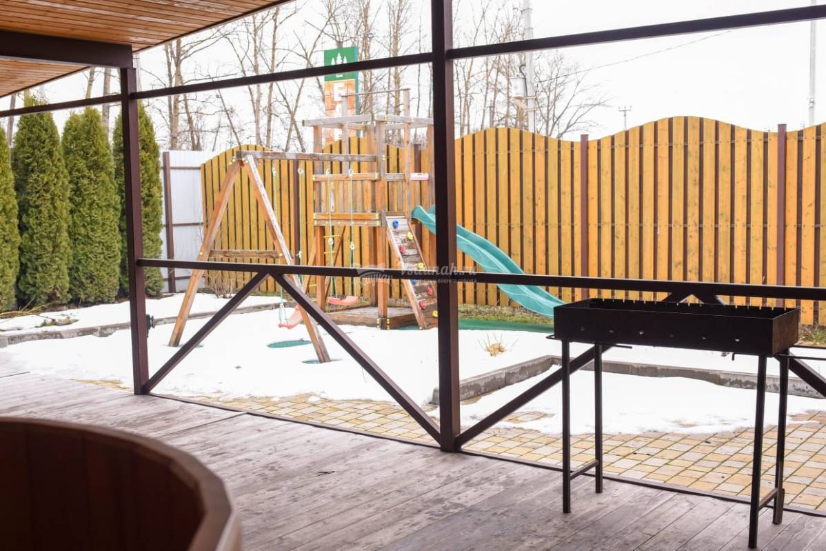 Отдельный выход на веранду с мангалом специально для гостей, где можно пожарить шашлык или выпить горячего чаю перед очередным заходом в баню.