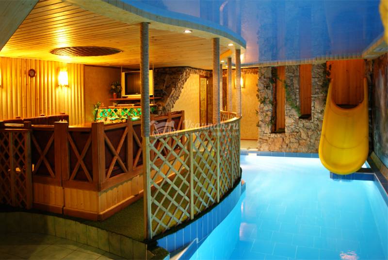 Достоинства русской бани несомненно оценят любители попариться в прямом смысле этого слова. Ведь в русской бане температура достигает 130 градусов! Зато насколько приятно будет после такой жары окунуться в бассейн, где вода просто ласкает тело своей нежностью.