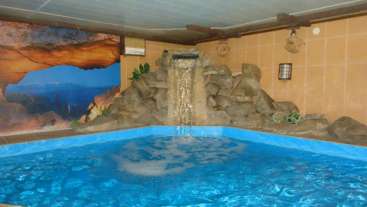 Вместительность 12-15 человек. У нас есть просторная комната для застолья, отдельная комната для отдыха и уединения, большой теплый бассейн, массажное кресло, и бильярдная комната.
